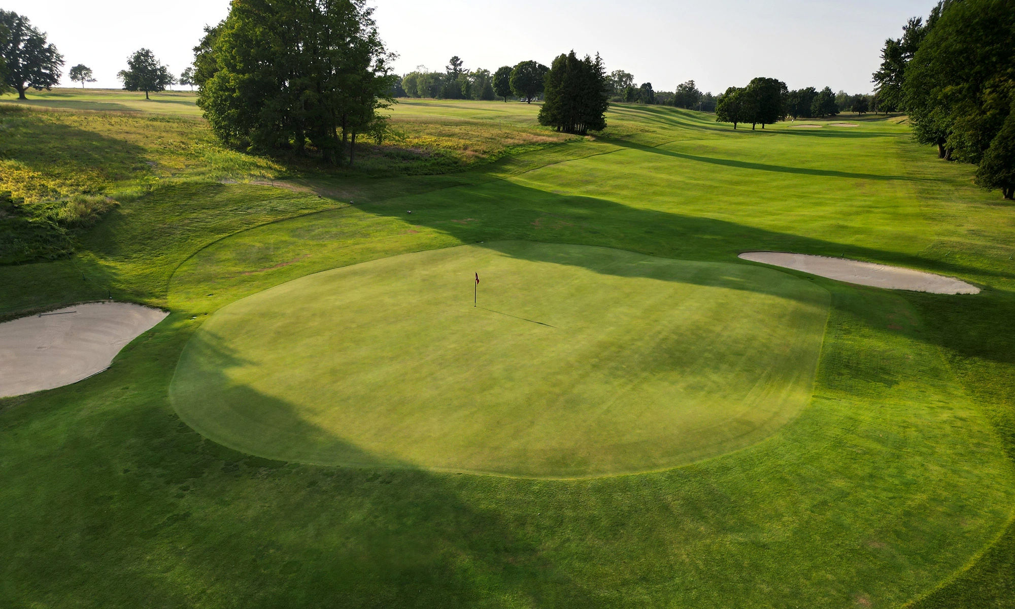 Belvedere Golf Club is one of the best walks in golf. The highlands of the Supernaw and Hooker farms on Marion Center Road, which dissects the course, was selected as the site where architect William Watson designed the course. Watson took full advantage of the property on both sides of the road, where the front nine is routed on one side and the back nine is routed on the other. The front nine plays down off the hill into a valley, where holes strategically flow around and over a winding creek and then return up the hill at hole 6 and play along the ridge to hole 9. The back nine plays downhill on hole 10, then back up to the great green site of hole 11, then meanders around the valley, then down off of the ridge at hole 15. The great 16th plays back up the hill to one of the best green sites in golf.